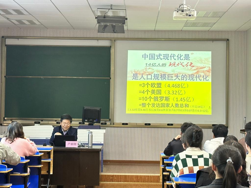 全面建設(shè)中國式現(xiàn)代化道路上必須牢牢把握五項(xiàng)重大原則。盧教授著重報告了要堅(jiān)持中國特色社會主義道路,既不走封閉僵化的老路,也不走改旗易幟的邪路,我黨反對一切形式的霸權(quán)主義,當(dāng)今世界去美元化也在逐步推廣,得到全場師生的一致認(rèn)同。