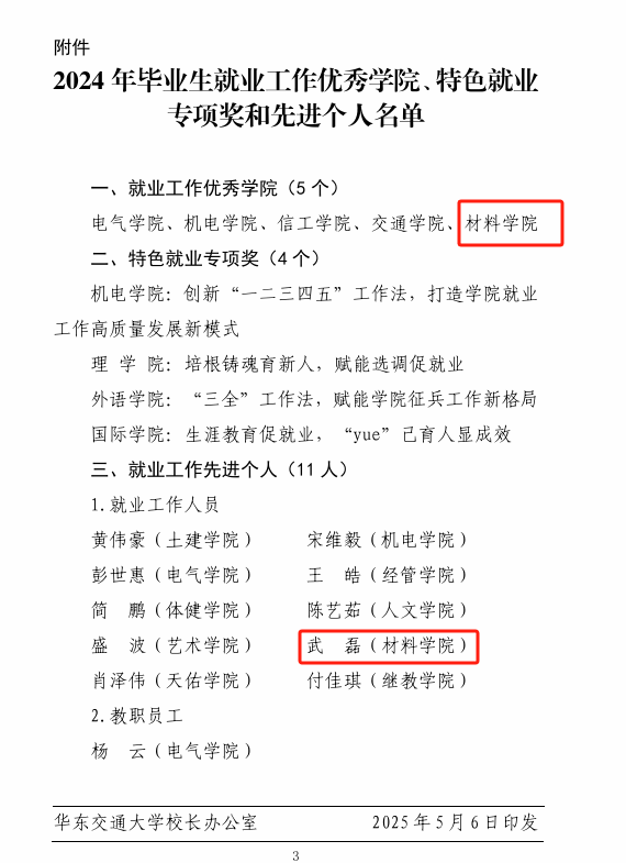 根據(jù)《華東交通大學畢業(yè)生就業(yè)工作考核及獎勵辦法(試行)》(華交校發(fā)[2015]26號)的規(guī)定,經(jīng)多部門協(xié)同評審、校領導審批,我院在就業(yè)工作中斬獲多項榮譽:我院被評選為“就業(yè)工作優(yōu)秀學院”、武磊老師被授予“就業(yè)工作先進個人”榮譽稱號。