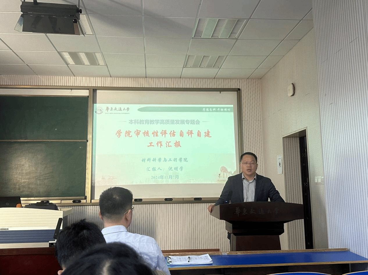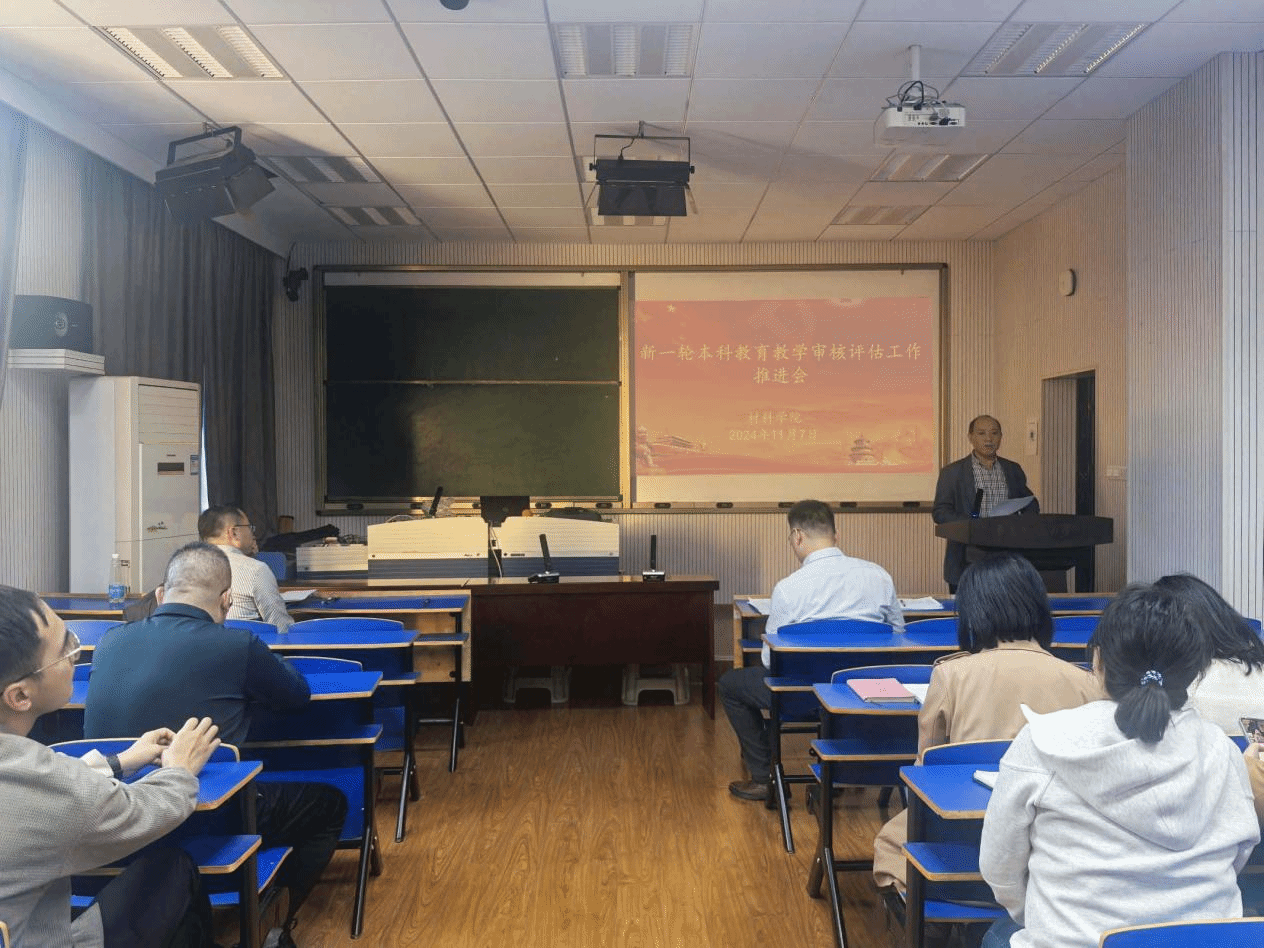 為全力以赴做好迎評工作,確保新一輪本科教育教學(xué)審核評估順利通過,2024年11月7日材料學(xué)院召開新一輪本科教育教學(xué)審核性評估工作推進會。本次會議由副院長唐延川主持,院長沈明學(xué)、黨委書記趙龍志以及學(xué)院全體教職工參加會議。