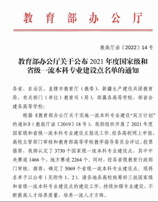 近日,教育部辦公廳發(fā)布了《關(guān)于公布 2021 年度國家級和省級一流本科專業(yè)建設(shè)點名單的通知》(教高廳函〔2022〕14號),我院材料成型及控制工程專業(yè)獲批2021年度國家一流本科專業(yè)建設(shè)點。此前,材料成型及控制工程和高分子材料與工程專業(yè)均獲批省級一流專業(yè)建設(shè)點,學(xué)院2個專業(yè)分別獲批國家級、省級一流專業(yè)建設(shè)點。