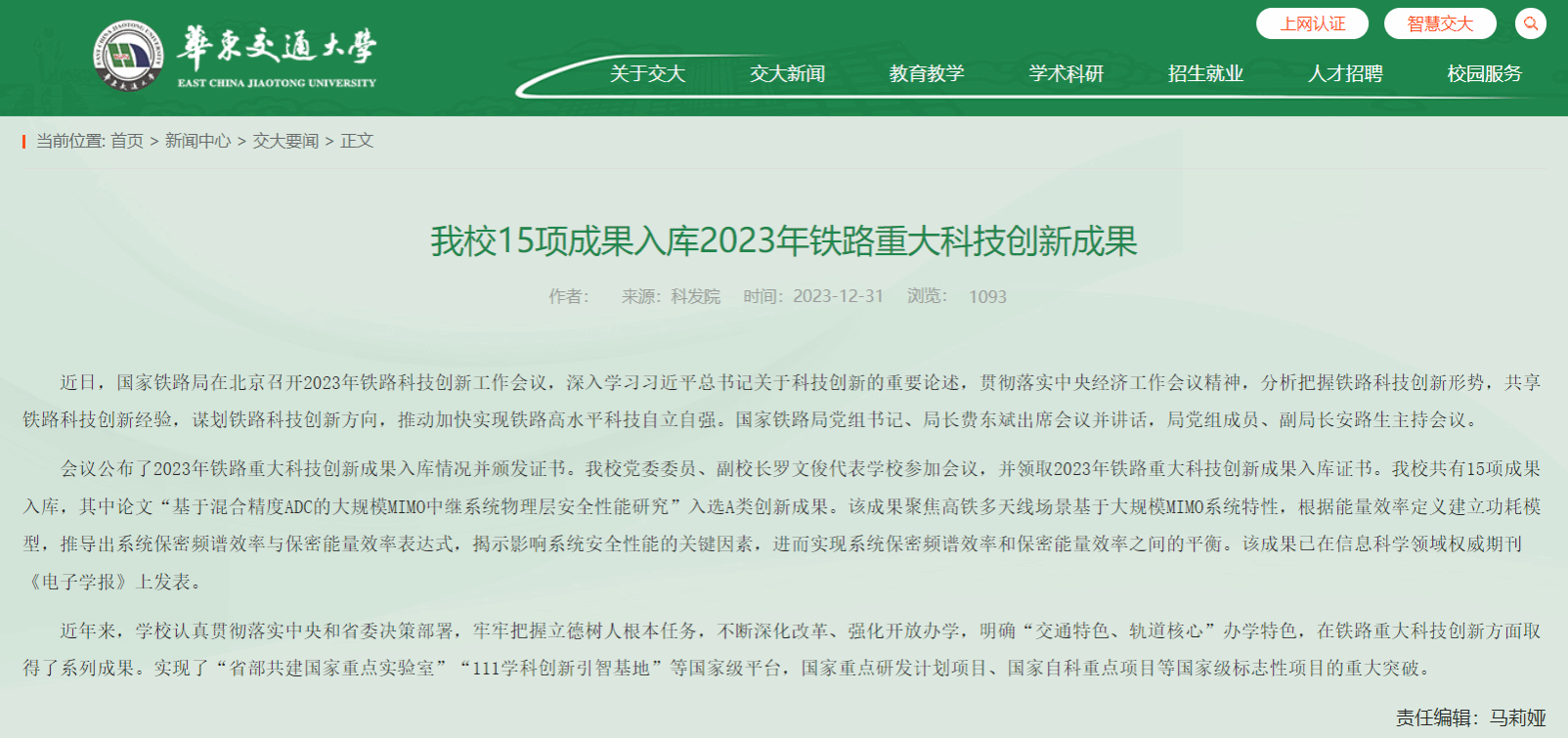 本年度我校共有15項(xiàng)入選國(guó)家鐵路局鐵路重大科技創(chuàng)新成果庫,我院入選3項(xiàng)。這些成果的取得對(duì)提升學(xué)院在鐵路行業(yè)的影響力和服務(wù)水平具有重要意義。