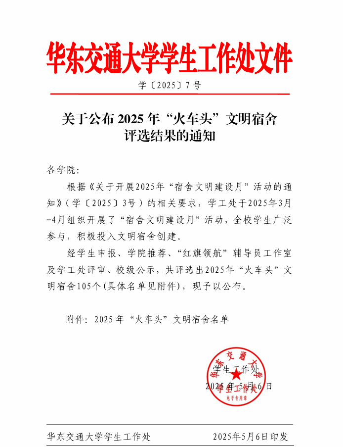 當(dāng)前位置: 首頁(yè) > 學(xué)團(tuán)工作 > 團(tuán)學(xué)工作 > 正文喜報(bào)|我院兩個(gè)宿舍獲評(píng)“火車(chē)頭”文明宿舍