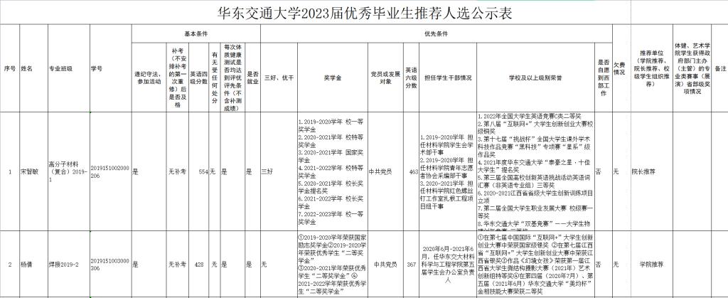 通知公告 當前位置: 首頁 > 通知公告 > 正文 華東交通大學2023屆優(yōu)秀畢業(yè)生推薦人選公示表 2023-04-19 18:24 公示期:2023年4月19日-2023年4月23日,如有問題請到學8棟226辦公室反饋,聯(lián)系電話:0791-87046828