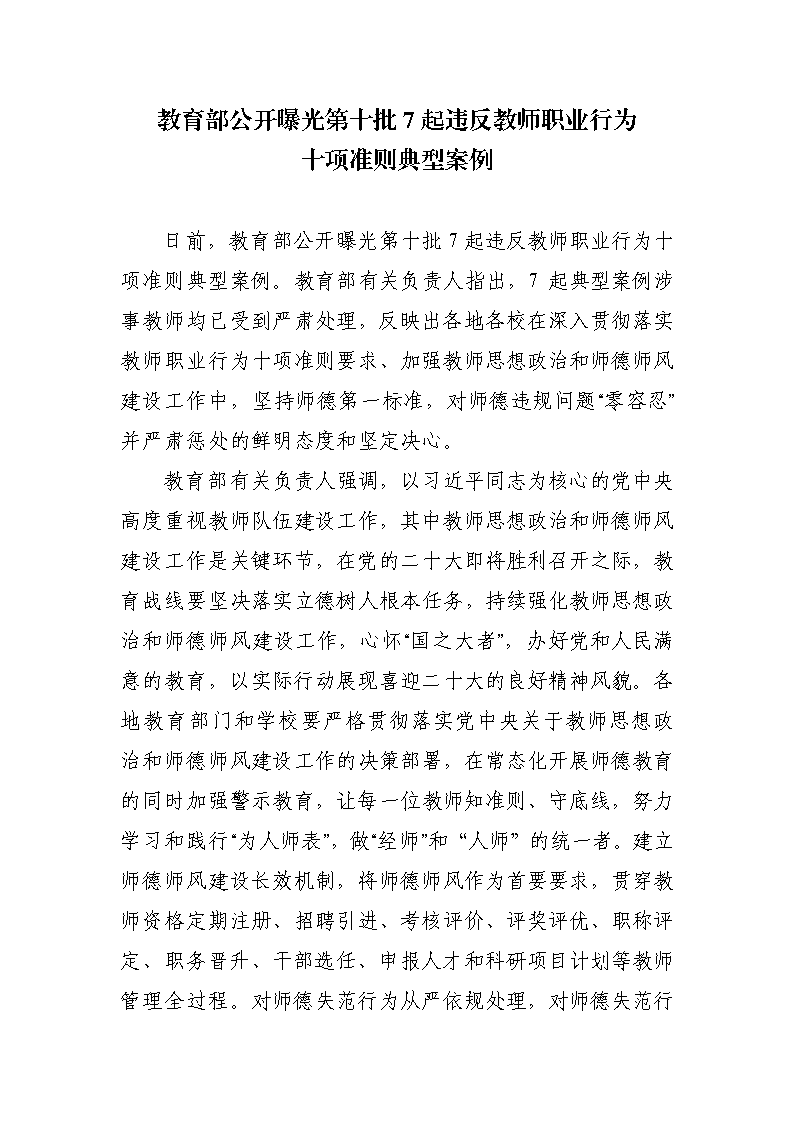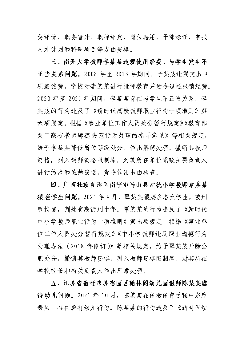 警示教育 當(dāng)前位置: 首頁(yè) > 黨建工作 > 警示教育 > 正文 教育部公開(kāi)曝光第十批7起違反教師職業(yè)行為十項(xiàng)準(zhǔn)則典型案例 2022-09-01 16:56